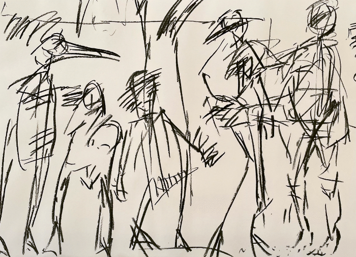 "Familienausflug" / Kohle / Papier / 80cm x 60cm / 2024 / © Wolfgang Mosig
